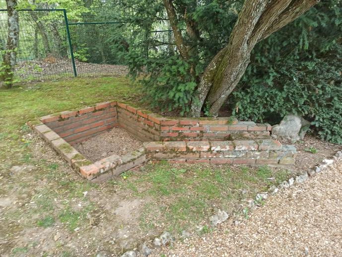 En haut du jardin, se trouvait un verger et un potager où des petites constructions dédiées aux plans d’asperges sont restées intactes, on y voit aussi les restes de l’ancien bassin qui servait à alimenter les plans de légumes et quelques fruits comme des fraises des bois ou des framboises.